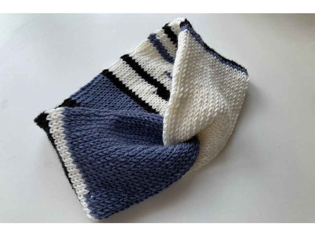 Dvouvrstvá ručně pletená čelenka, skvělý doplněk na zimní i přechodové období. Příze značky Merino (50% merino vlna, 50% akryl) je příjemná na dotyk, měkký, jemný, nekousavý a přizpůsobivá.
