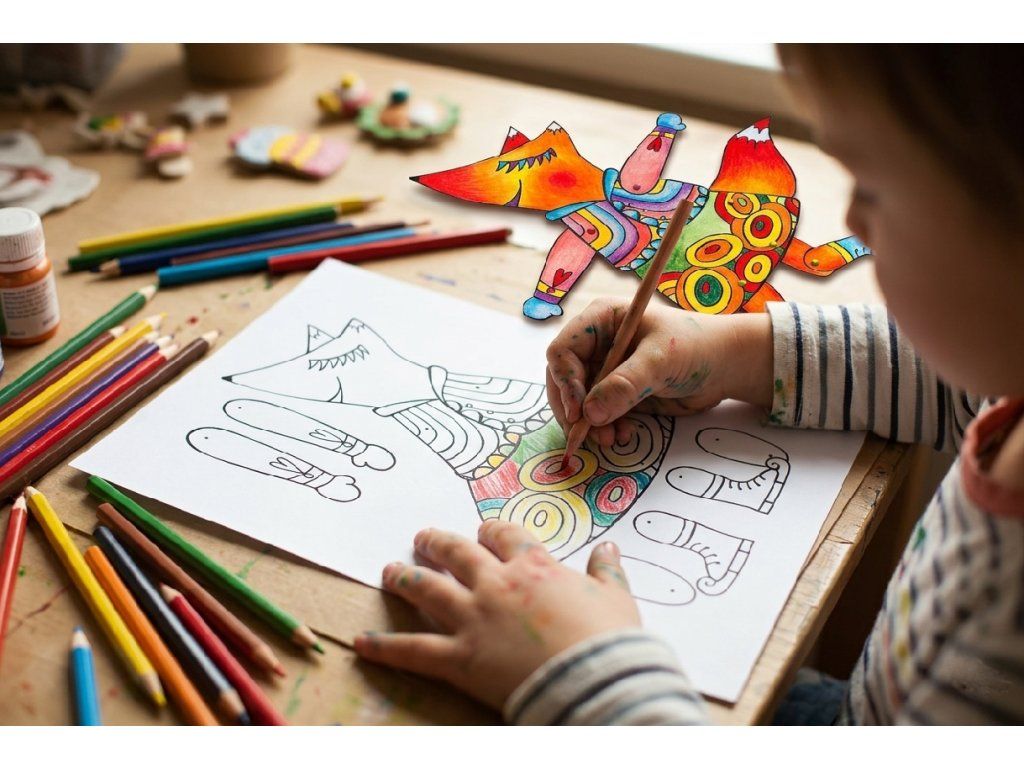 Jakou barevnost zvolíte je jen na vás. Vybarvovat můžete obyčejnými i akvarelovými pastelkami, fixem i voskovkami. Pohyblivé části spojíte brads sponami, které jsou součástí balení.