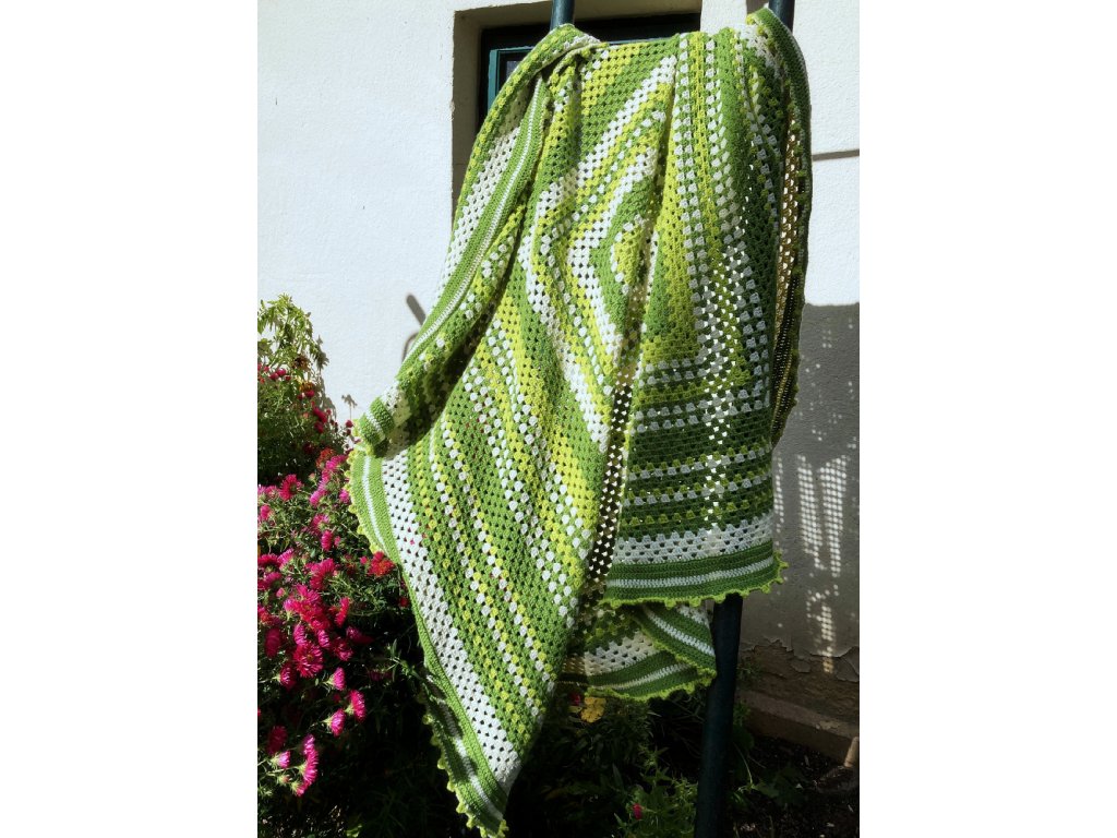Zelená prý uklidňuje. Tato ručně háčkovaná deka/přehoz navíc i hřeje. Je měkká a příjemná, háčkovaná z příze značky Batole.